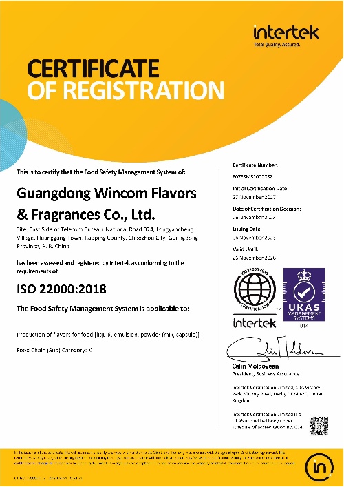 As the main drafting unit, WINCOM has participated in the formulation of the “Daily Flavor 22731-2017 National Standard”;