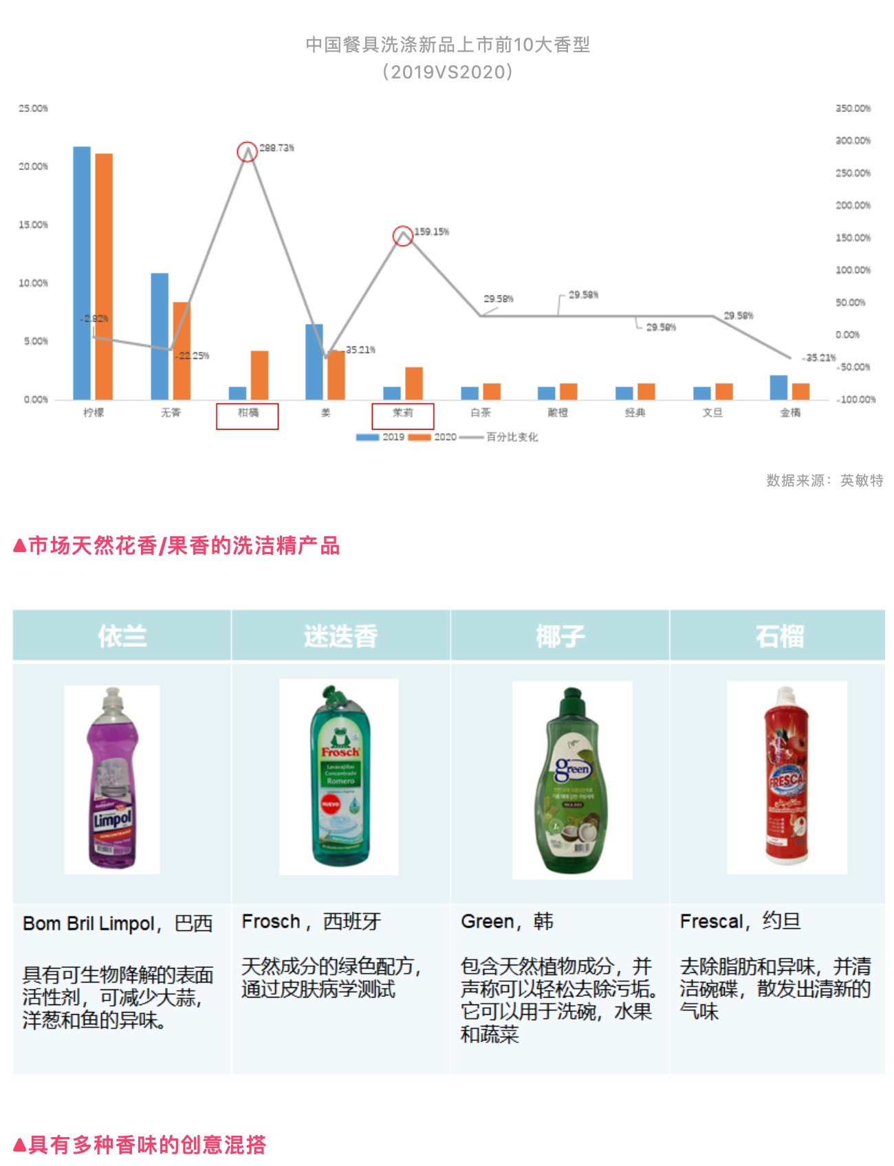 越來越多的品牌推出了多種香味創(chuàng)意混搭的洗潔精產(chǎn)品:
